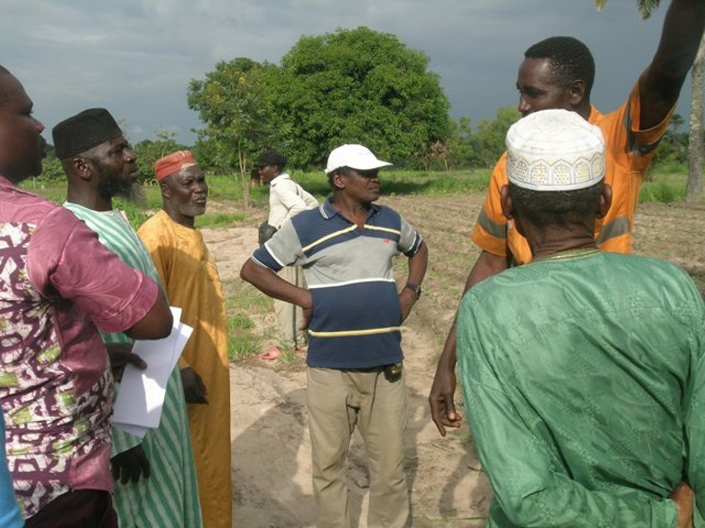 Sotto l'albero del villaggio di Kadjoudè con la gente venuta a chiedere un pozzo