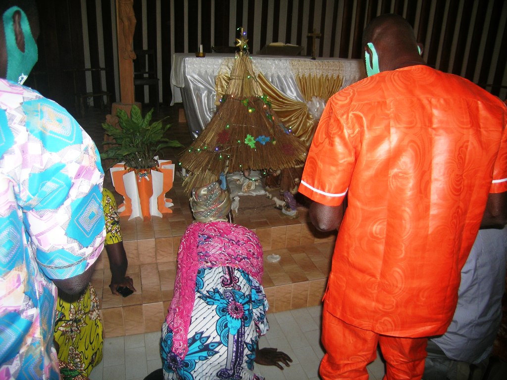 Dans les photos on voit des sacs de riz: un don d'un ami Ibo qui, tous les ans, fait ce don pour les plus démunis de tout le diocèse.